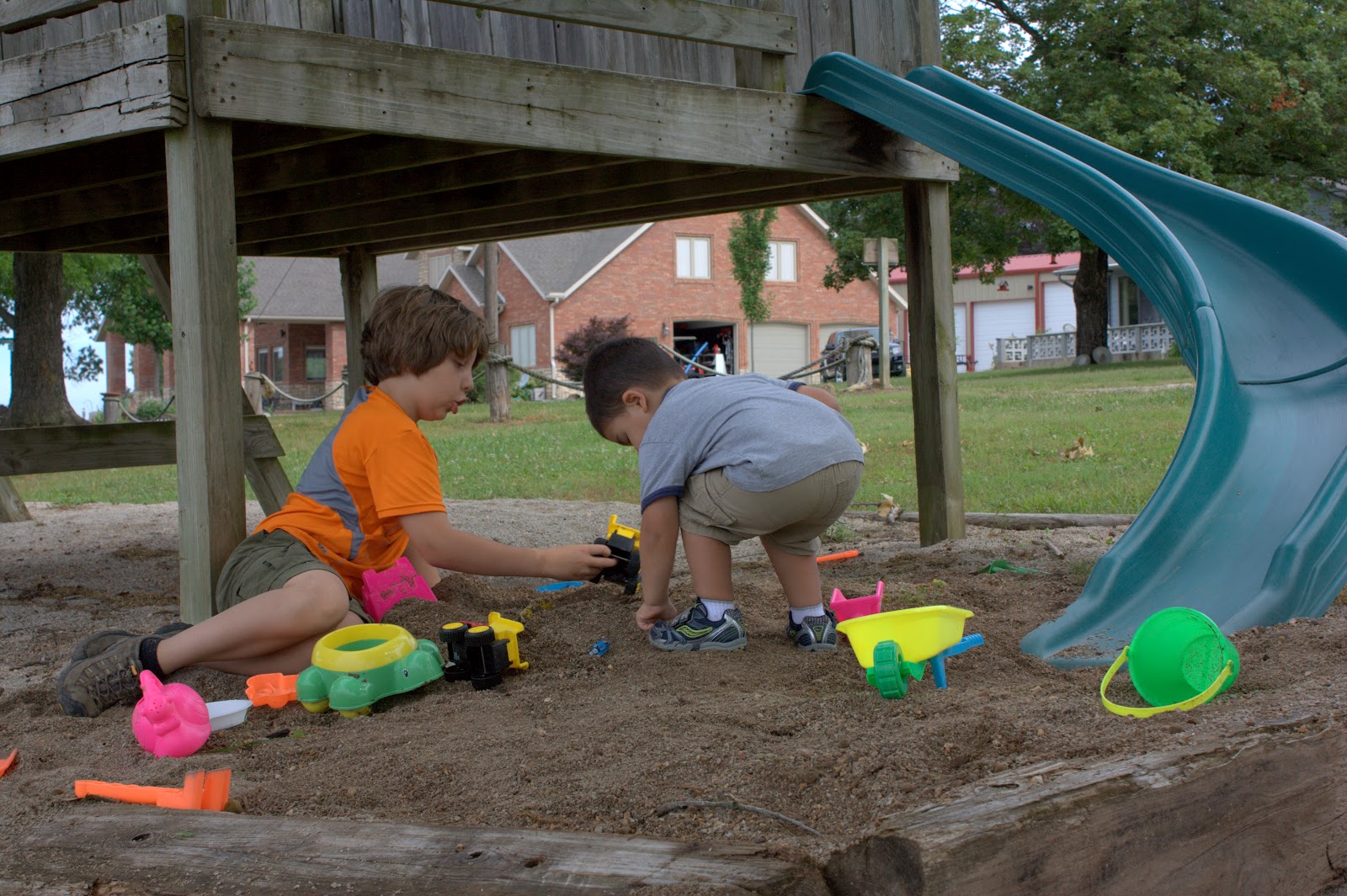 Cousin Anthony and Caleb playing on the playground near the cabins