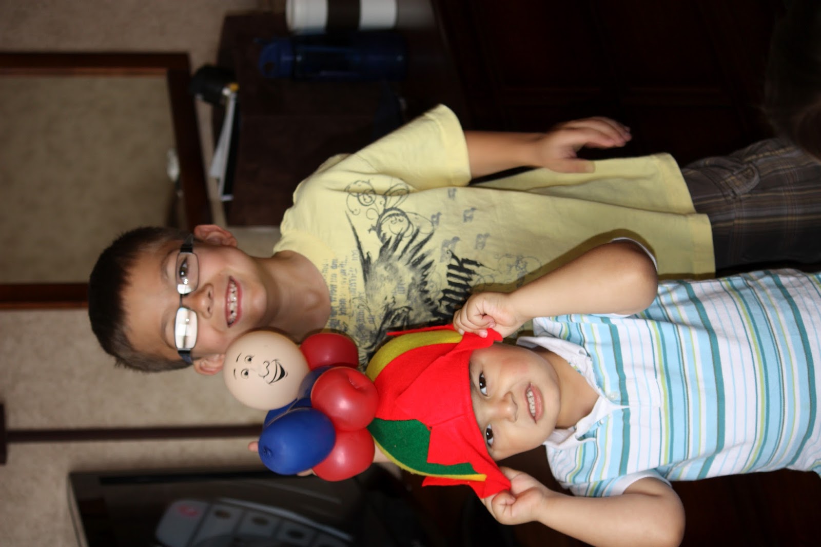 Caleb wearing one of my old souvenir hats from a jr. high trip to King's Island in Cincinnati, OH.